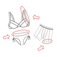 * 內衣的頸圈、袖口、內褲的腳圈及腰圍等位置縫上日清紡「無比耐」彈性透明膠帶不會厚凸起來,令穿著時更舒適