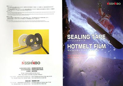 經過多年的聚氨酯技術及經驗,成功研發出一種高性能的防水拼貼帶,稱為日清紡「防水」拼貼帶,這款拼貼帶以全防水構造,可以應用在各類型的防水服裝及產品。